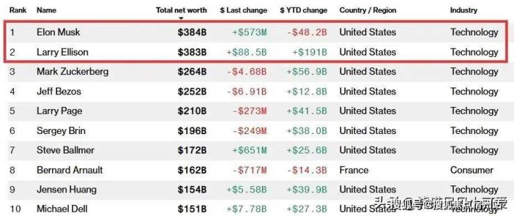 美国东部当地时间10日上午,甲骨文联合创始人拉里·埃里森(Larry Ellison)的身家飙升至3930亿美元,超越马斯克(3850亿美元),成为全球首富。