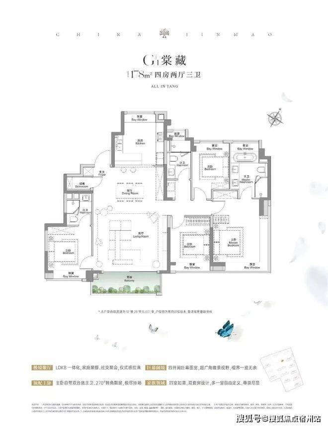 建面约117㎡3房2厅2卫,✅✅金茂棠前售楼处电话:400-8824-258✅✅做到了3+1开间朝南5个飘窗+主卧套房设计+270°转角飘窗,所有的尺度都有进一步提升。