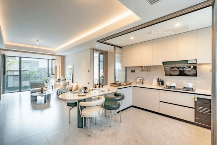 厨房移门采用大板砖厨房墙体、硅酸钙板厨房吊顶,定制金属移门+瓦楞玻璃,可根据需求自行开合,不仅引入更多光线,更增强了互动性。同时配备方太(或同等档次品牌,以实际交付为准)油烟机和灶台、洗碗机,以及凉霸。☑️☑️金地嘉峯汇售楼处电话:400-1183-605☑️☑️