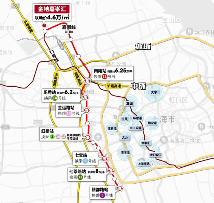 与此同时,嘉闵线(在建中)也迎来了新的进展:随着最后一块顶板混凝土的浇筑完成,上海轨道交通市域线嘉闵线3标嘉戬公路站主体结构顺利封顶。☑️☑️金地嘉峯汇售楼处电话:400-1183-605☑️☑️