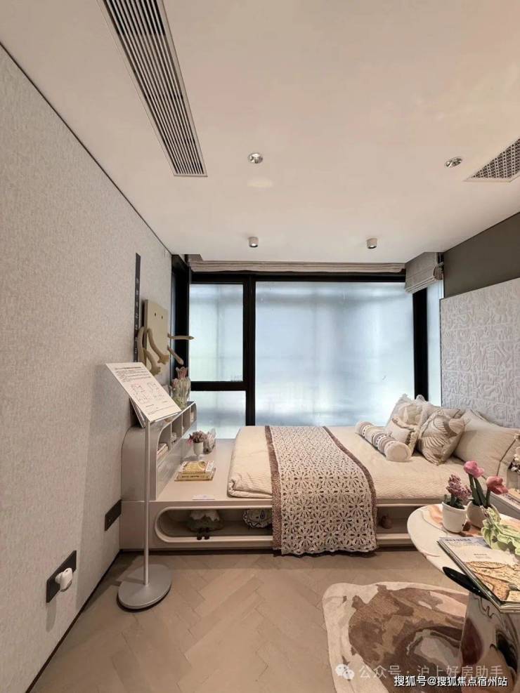 豪华的套房设计,北侧卫浴飘窗+南向床边双飘窗的设计,招商序售楼处电话☎:400-8266-670✅✅更是把这个空间的视野和收纳空间延展开来,尺度感真的很惊人。