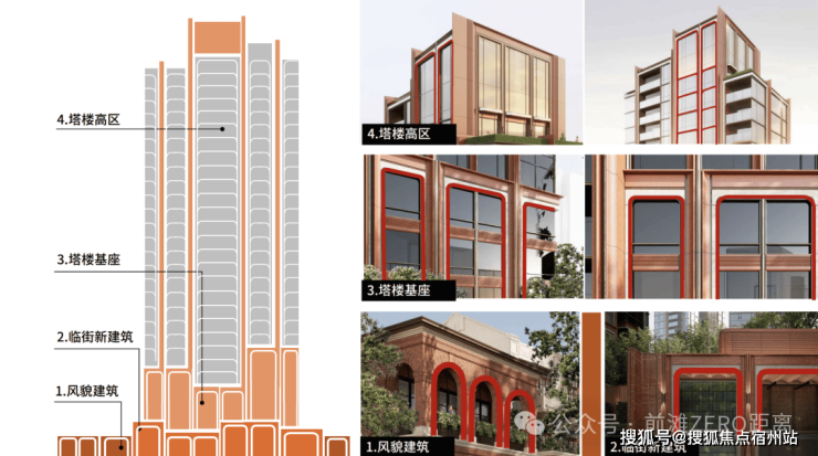 "三段式"设计: 底部保留石库门风貌,中段采用玻璃幕墙,顶部设计"冠冕"造型。