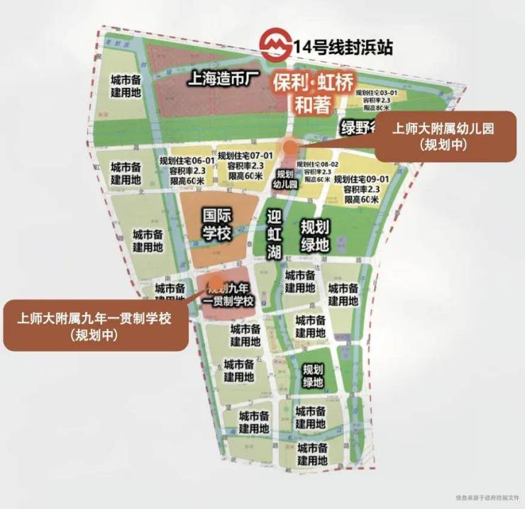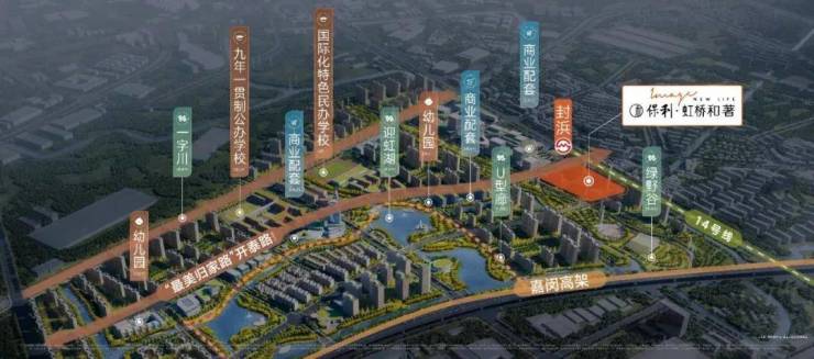计划引入 九年一贯制公办教育、民办学校(国际化特色办学),规划打造 10公顷迎虹湖、 带主题滨水公园的15公顷绿野谷公园等配套。