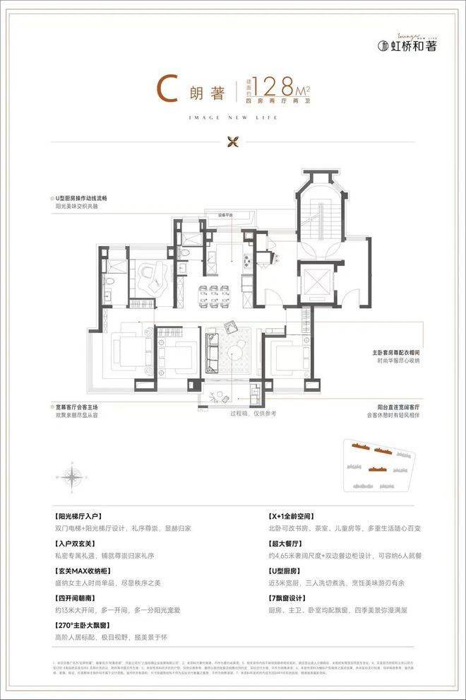 建面约128㎡4房稀缺改善户型,灵活性强