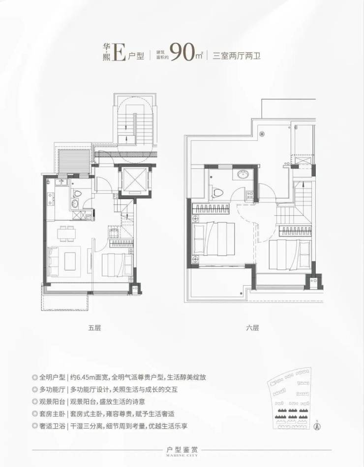 华发还有目前松江比较稀缺的叠加房源,分为六层叠加和四层叠加。主力户型建面约90-133㎡,特别是这个E户型,建面仅约90㎡,对于想住叠加但预算有限的购房者来说,面宽约6.45米,上下动静分离带,是个不错的选择! 华发海上都荟售楼处电话:400-8894-638
