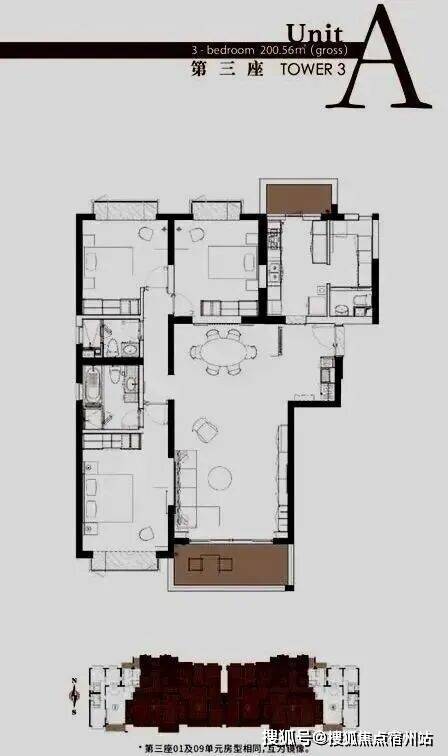 1/3号楼全套户型图如下: