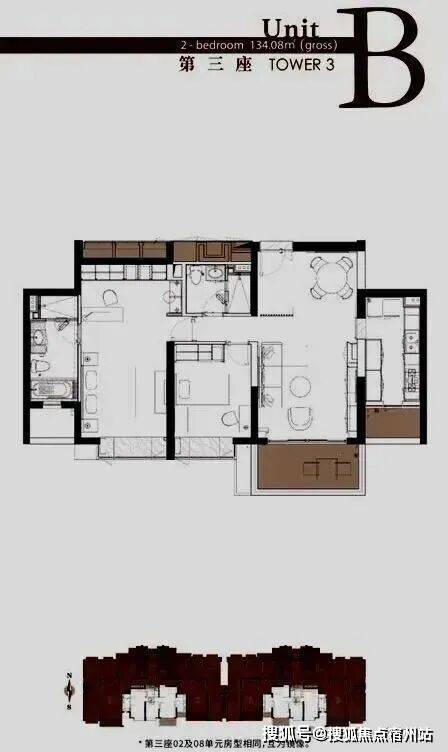 3号楼户型:134㎡2房,184㎡/200㎡3房