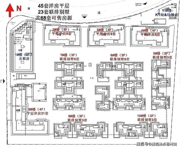 『青溪云邸』推出170-690㎡的洋房和别墅产品,45套洋房平层,23套联排别墅,装修交付,共68套房源。
