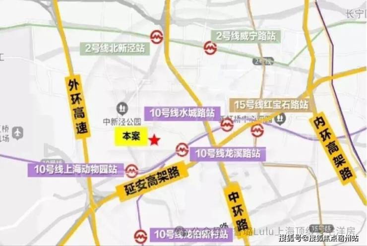 【交通】西郊板块虽然属于长宁,但是距离横穿长宁的2号线其实还是有些距离,地块距离2号线北新泾有3公里左右距离,着实有些远,但是距离10号线龙溪路却非常近,800米距离(但住在西郊国宾区的大佬们,或许不坐地铁)