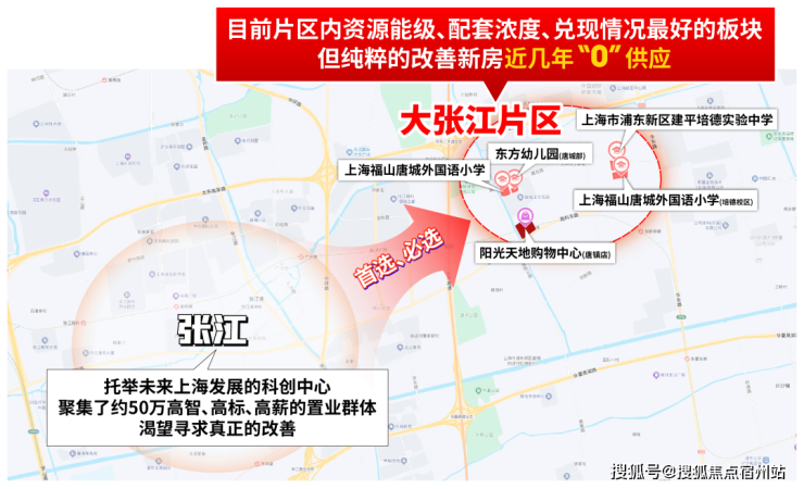 对于张江的改善需求而言,唐镇是目前片区内资源能级、配套浓度、兑现情况最好的板块