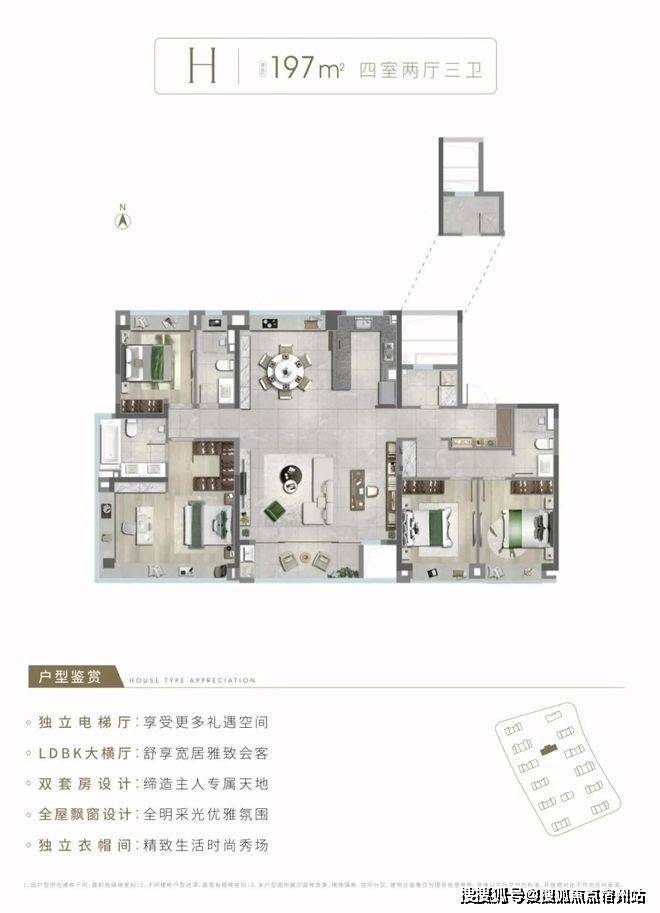 约197㎡户型,更是做到双套房设计,适配大家庭多样化的生活需求!