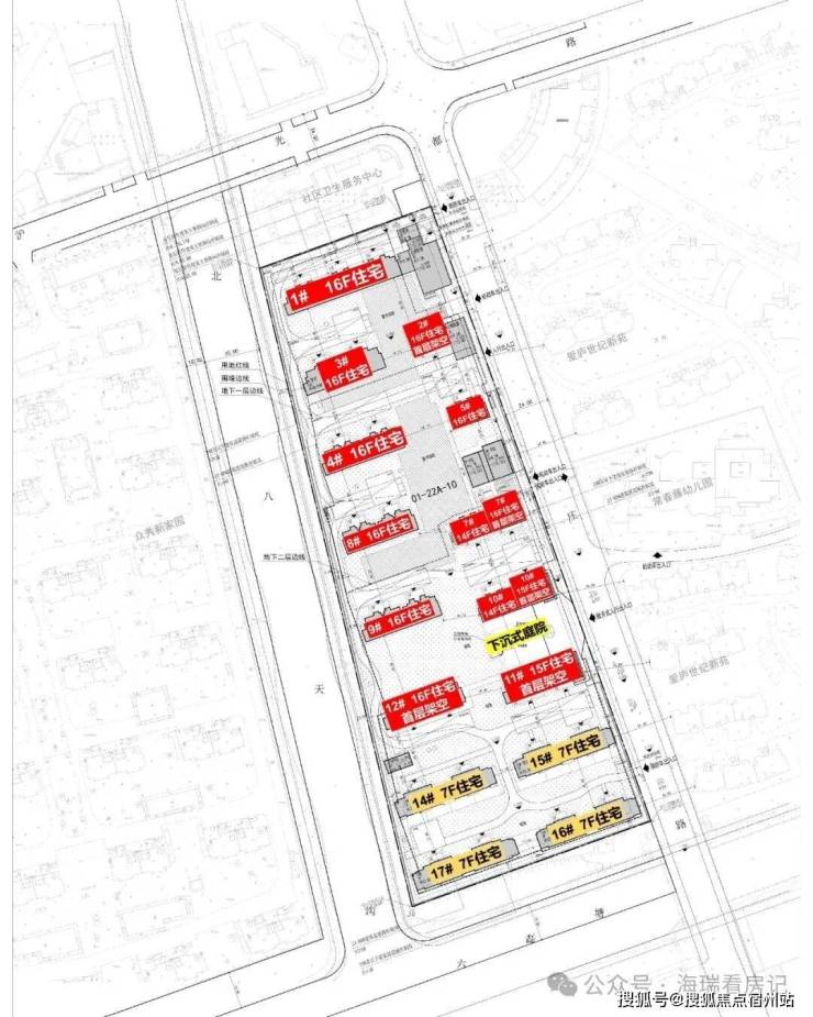 地块建设15栋7-16F住宅,项目容积率2.0,拟建4栋7F住宅,以及11栋14-16F住宅;项目配置了下沉庭院,并且部分楼栋做了首层架空。
