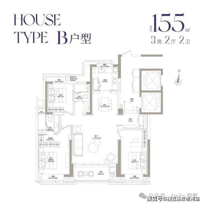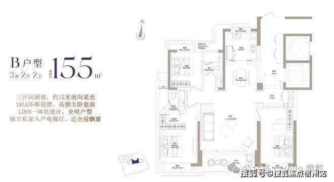 ✅ 155㎡三房:都会精英优选,轻松入住核心地段;
