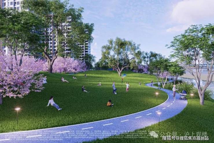 国际先进公园住区: 向城市让渡一些开放空间,以前街后河、 约12000m滨水公园 (代建)等一体化柔性边界,打造「外揽城市绿肺,内藏森境天地」公园住区,让繁华都市与静谧生活自然过渡。
