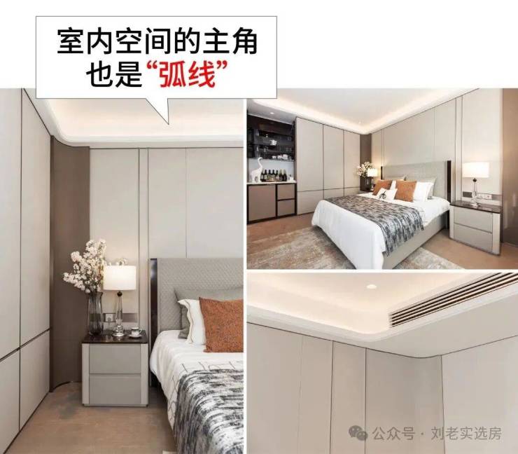 其实现在不少开发商在强调”弧线“,但像紫薇之星这样”全屋遍布“的极为少见,因为好看的代价是工艺难度高、成本高、施工周期长,无法批量化落地。