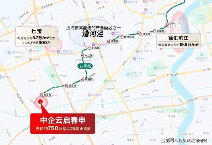 ①漕河泾4站范围内的新房总价都在约千万以上,约750万级只有中企云启春申一盘。这是同样通勤范围内,你能买到的唯一新房。