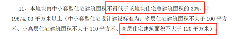 除此之外,在出让文件中明确规定了,整个项目的中小套数配比不低于总建筑面积的30%。