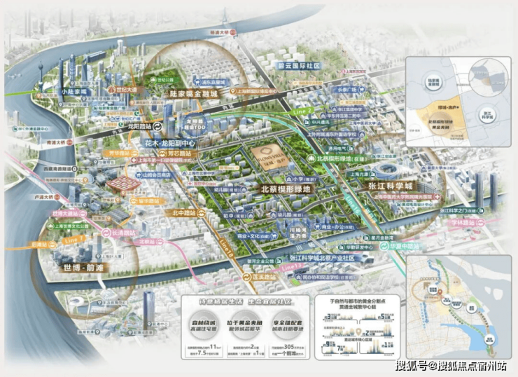 同时项目南侧的 北中路和莲安路 都可以通达东西(联通成山路直达世博),向西直通上海光源所在的张江核心区。