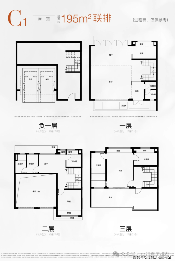 建面约195㎡的C1户型,尺度更加惊人,墅居体验堪称“庄园式”!