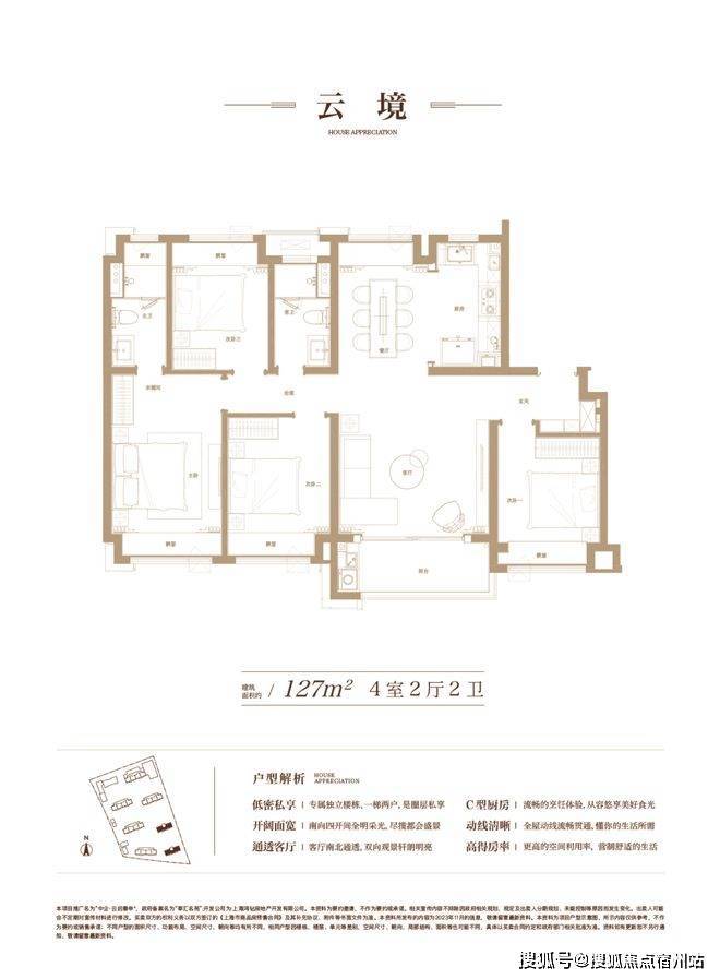 建筑约127㎡的「云境」空间内, 四开间南向结合舒朗的方厅,大尺度的面宽让光赋予了生活更多的灵感。 厨房U形台面,尽情挥洒味觉灵感, 一体化的客餐厅创造更丰富的用餐、社交场景,从西式brunch到日式omakase,尽享味蕾的欢愉时光。 一梯两户的入户,搭配轩朗的玄关,让每一次归家,都更从容......
