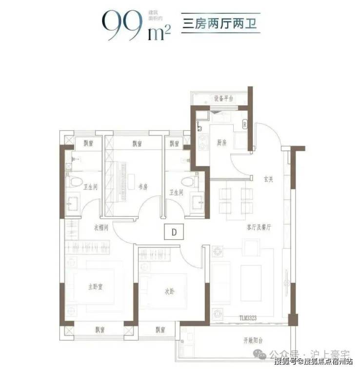 建面约100㎡3房2卫,阳光三房,同等面积更多功能;宽幅南向观景阳台,把居住变成风景;步入式衣帽间,给予生活更多从容。