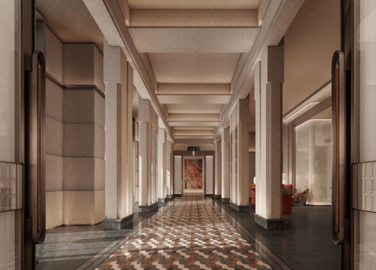 国际知名设计院CCD以“新旧共生”为笔,提取石库门过街楼的肌理、巴洛克雕花门楣的精致,与现代奢石、金属格栅碰撞出时空交错的美学火花——石库门的温润质感与金属的冷峻光泽交织,巴洛克的繁复雕花在光影中流转,既复刻了海派文化的经典符号,又注入了当代设计的先锋语言。