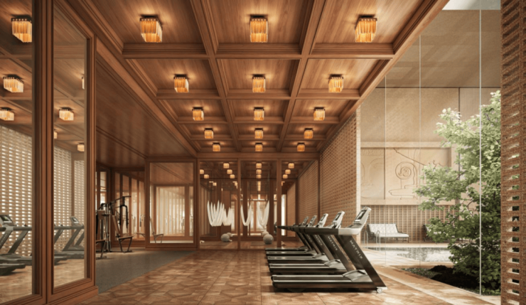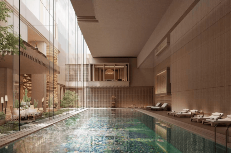 功能场景如星河般铺陈,恒温泳池中水波荡漾着光影,游弋间仿佛穿梭于弄堂天井与现代艺术空间,既可触摸历史轮廓,又能感受现代生活的温度。