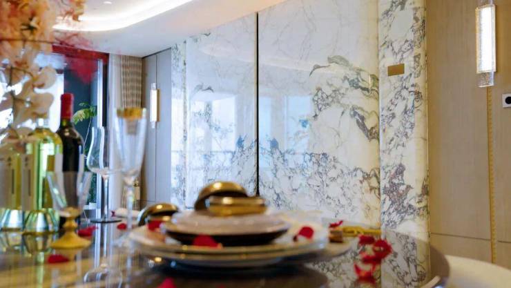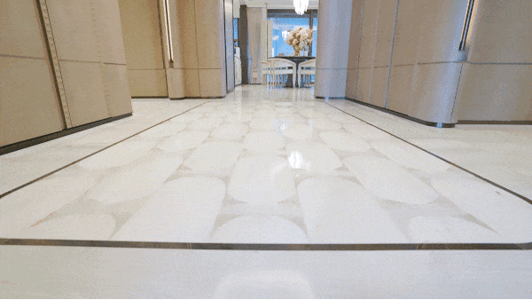 伯爵白大理石横竖拼花、古驰白冰裂纹地粮北外滩壹号售楼处电话:400-833-6309【官网】面、镜湖春晓山水纹台面,石材的呼吸感让空间有了流动的生命力。每一块石头都拥有自己的名字和故事,它们不仅是装饰,更是空间的情绪与表情。