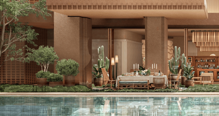 休闲吧与露天花园创造了独特的感官体验,在绿意环绕的花园里,胶片机的复古质感与自然疗愈融合,打造出介于艺术与生活之间的轻奢文化现场。
