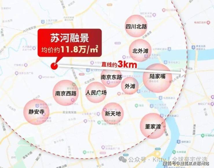 你看地图,如果把视角放大到3公里半径,范围内江涵盖陆家嘴、人民广场、静安寺、南京西路、南京东路、外滩、新天地等城市CBD,上海几乎所有的高能级城市资源都在苏河融景业主的生活场域之内!