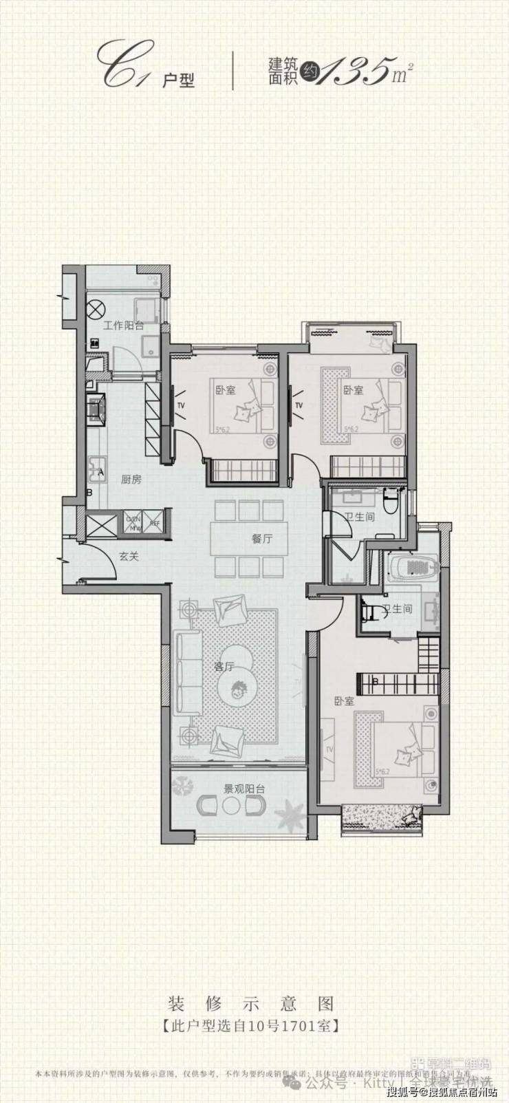 💫建面约135平三房,南北通透,全明空间,动静分离。宽绰阳台,视野开阔。