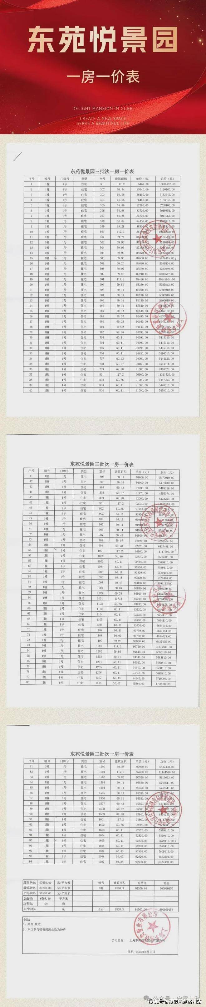 最新一房一价表: