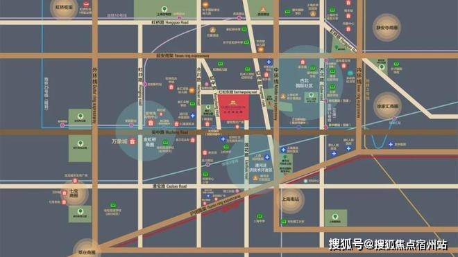 交通配套方面:项目地处长宁、徐汇、闵行三区交汇的金虹桥板块的核心区位,拥有多维立体的交通,延安高架、中环线、外环线环伺。