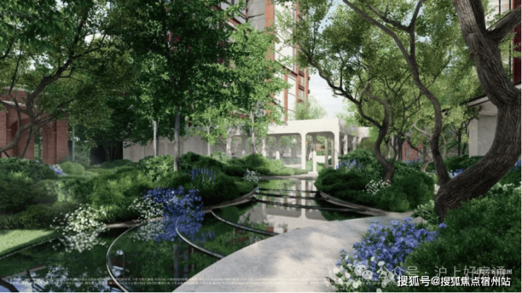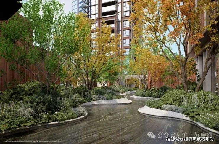 亿元级印象派园林:邀请国际景观大师Pok Kobkongsanti 操刀,突破市区项目常见的「兵列树阵式」布局,通过建筑楼体的精密偏转, 形成罕见的围合式社区形态。
