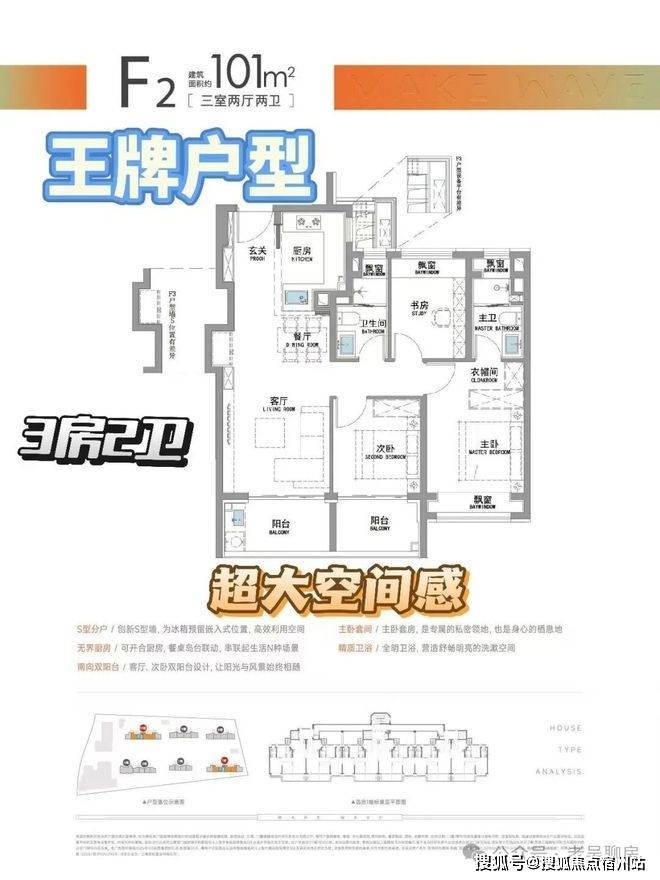 101平3房2厅2卫总价:458-544万、套数108套