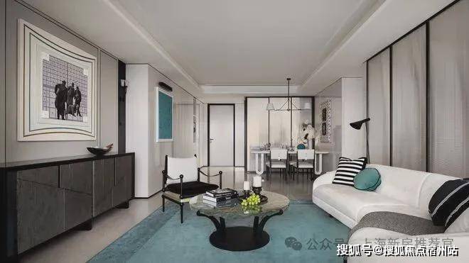 宽境阳台、客餐一体,全域贯通配合香奈儿高奢风,呈现超大尺度家庭公共空间;