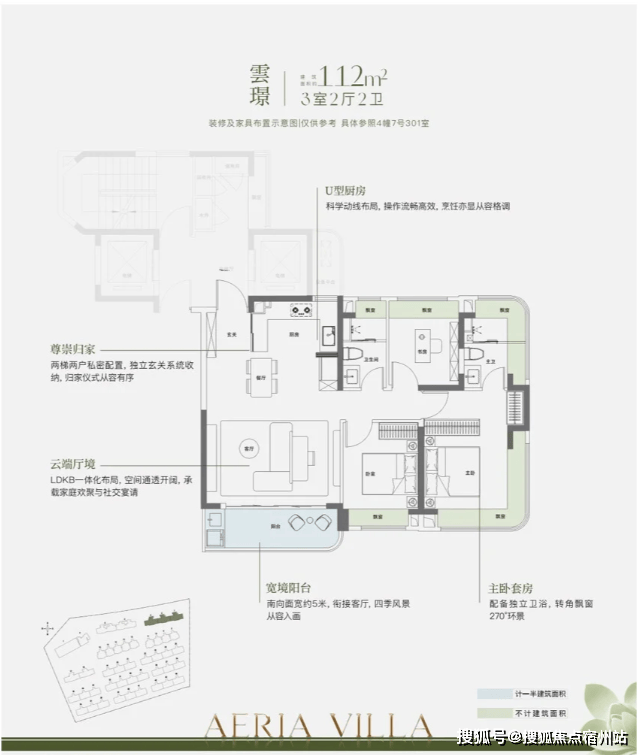 U型厨房布局 合理,让烹饪成为享受;全屋 飘窗全赠送 ,让每一寸空间都物尽其用;