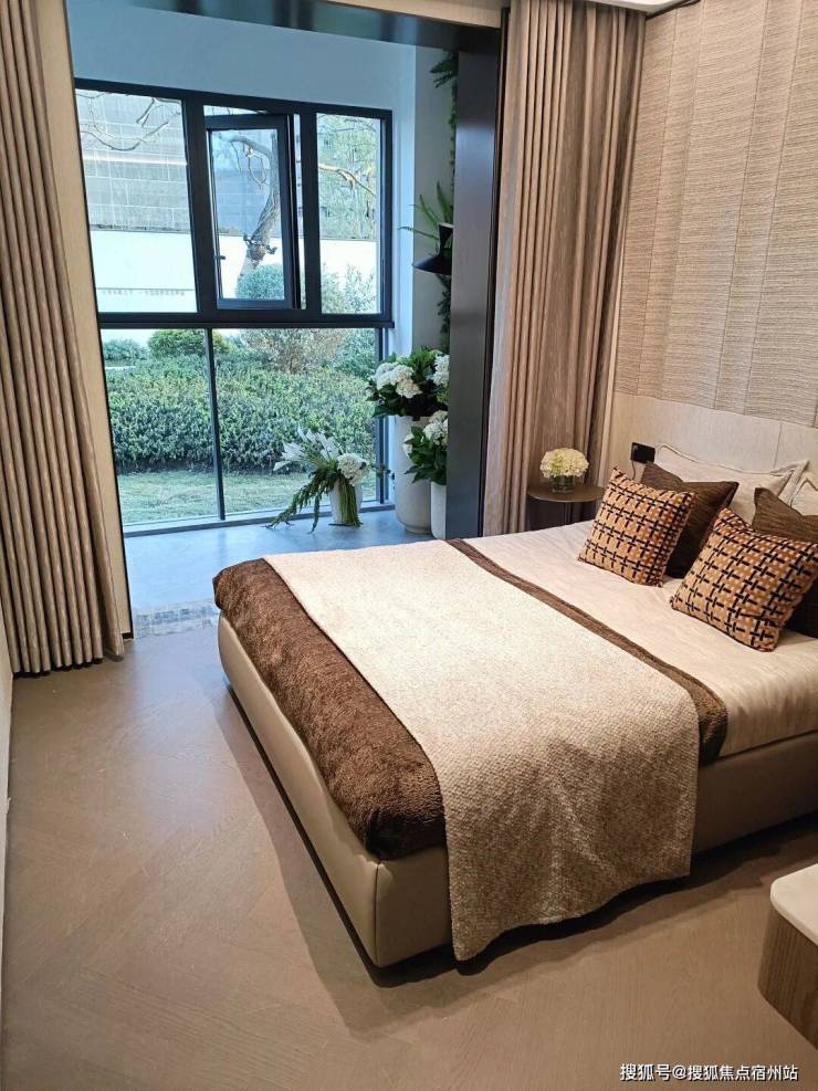 端户主卧也同样配置双270°转角飘窗,将公园美景引入室内。