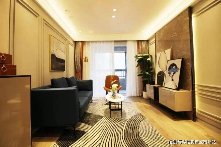 从户型图就能看到三开间朝南,看了样板间的实景更觉得舒适。客厅朝南的好处不用多说,白天即使不开灯,整个空间也很通透。82㎡有这样的客厅,非常不错。
