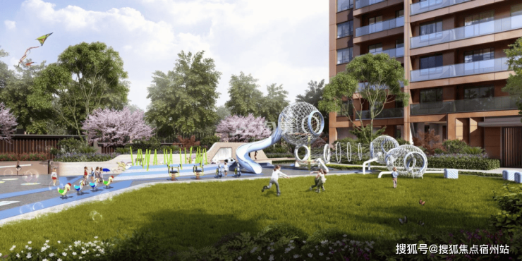 考虑到不同年龄段业主的休闲娱乐需求,项目于园林间打造了四大全龄乐活场。迈入新未来的实景社区,首先映入眼帘的是儿童游玩区域,孩子们可以尽情嬉戏追逐,尽享童年的美好;