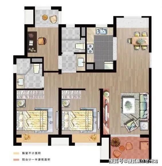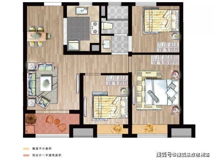 3房2厅1卫,在当下2卫风靡的情况下看似不太行,但其实是开发商对市场进行了深入研究,才得出这样实用的配置。