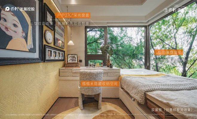 户户带270°转角飘窗,完全适配双孩书桌+床+收纳的需求,