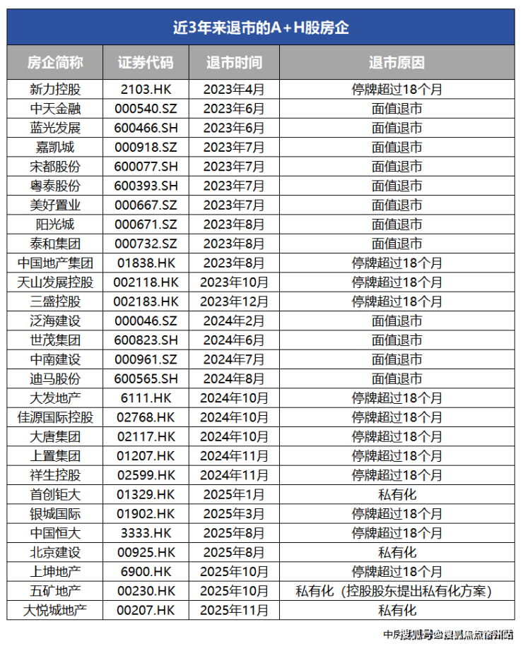 近3年已有28家上市房企退市