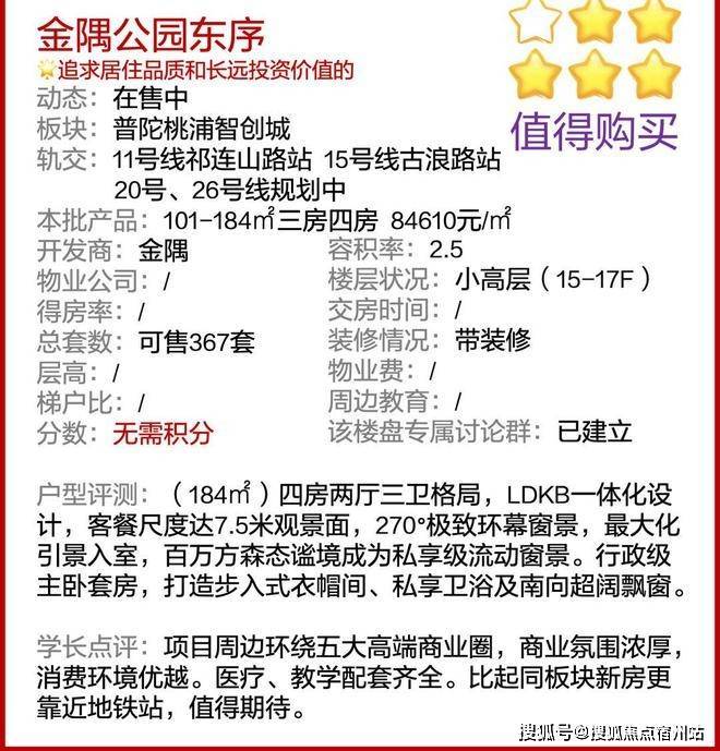 最新消息:普陀桃浦「金隅公园东序」正在热销中!建面约101-184㎡三房四房,均价84610元/㎡!