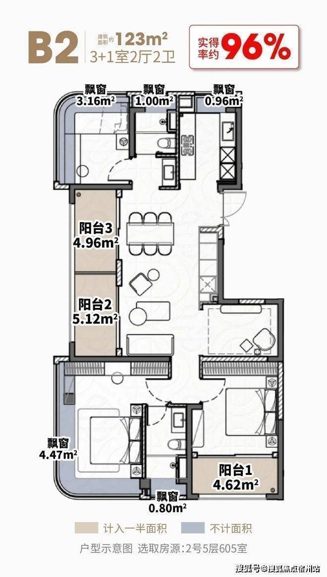 建面约123㎡4房,三阳台面积达约14.7㎡(赠送一半),5飘窗赠送高达约10.4㎡,室内使用面积约117.8㎡,实得率高达约96%,✅✅大华·静安年华售楼处电话:400 - 8824 - 258✅✅总赠送面积相当于两个次卧。