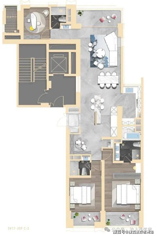 尤其主卧星级套房,配置独立衣帽间、书房,奢华主卫四分离,双台盆+淋浴区+大浴缸+智能马桶,私密性&奢适度无敌;
