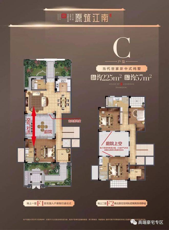 项目采用中式院落式布局设计,每家都能够享受私人庭院,以最小面积225平为例,在户型的中间部分,有一处围合式庭院,位于客厅、卧室的中间处,自家人的院落私密性极好。