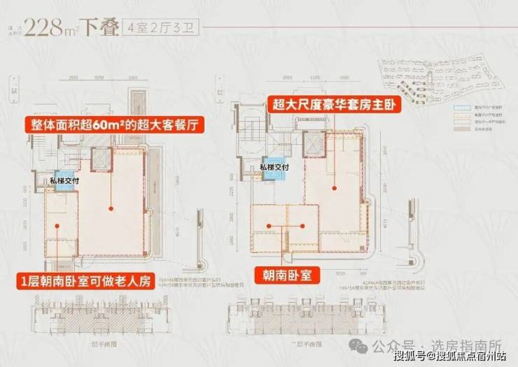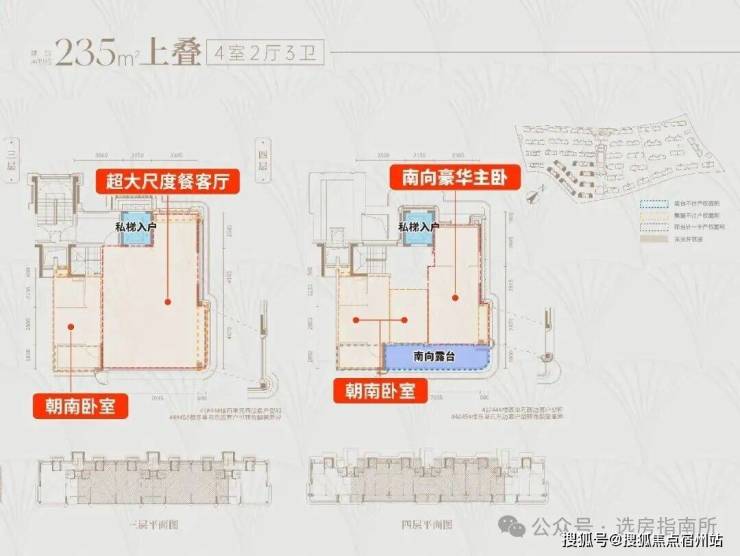 上叠功能性与下叠看齐,也是 四个朝南的全明卧室,主卧豪华套房配置 ,外接 南向超大露台 ,观星品茗无比惬意;