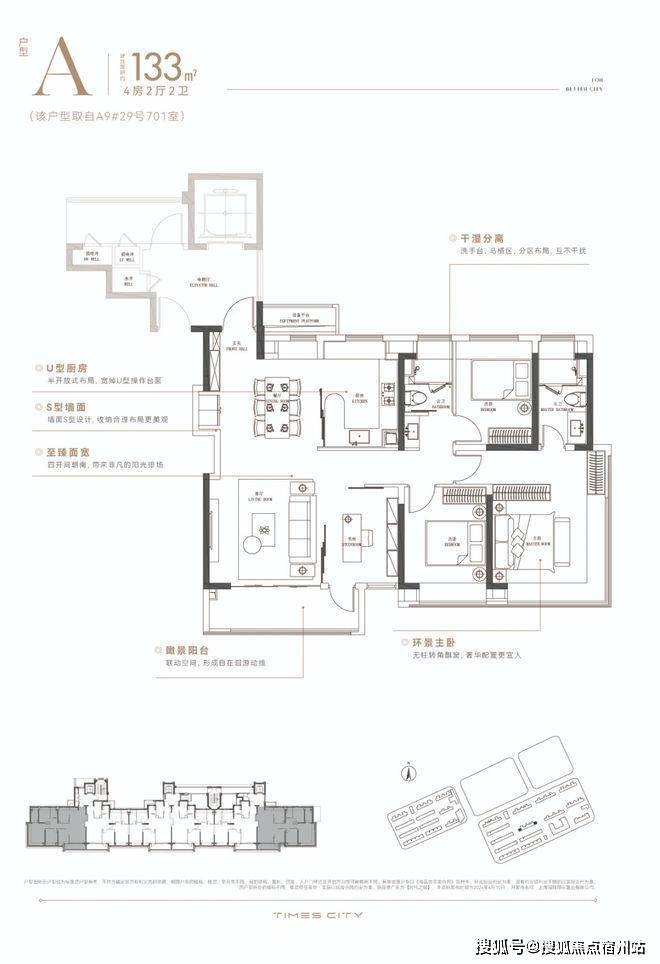 华润置地时代之城高层产品将百平上下的改善户型做出了轻奢级的居住体验,把约133㎡的改善四房做出了豪宅的尺度感。