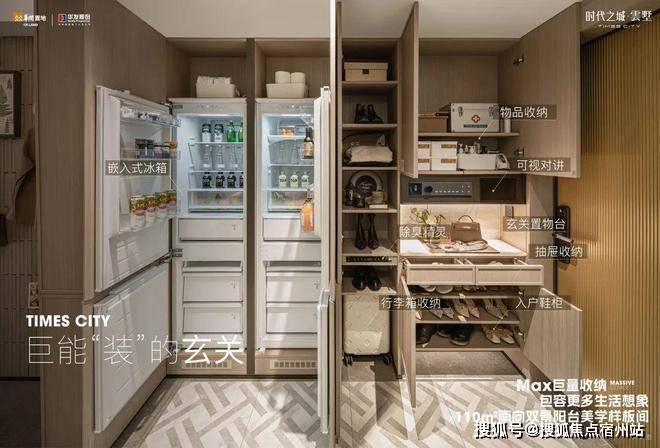 玄关精细化分区,✅✅时代之城·雲墅售楼处电话:400 - 882 - 4258✅✅玄关柜与鞋柜的部分做了非常多的功能分区设计,小到隐藏的穿鞋凳、伞架,大到除臭精灵、行李箱或是长靴,都能收纳到这个空间内。✅✅时代之城·雲墅售楼处电话:400 - 882 - 4258✅✅S墙设计预留双开门冰箱位置,将厨房空间释放出来。